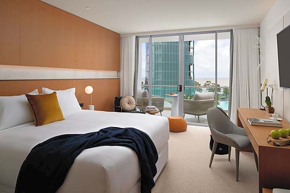 The Resort Room has magnificent views overlooking the 1000sqm swimming lagoon, a spacious balcony, rainforest shower, air-conditioning and blackout blinds.